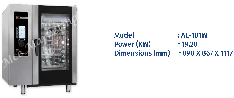 The ADVANCE electric ovens have an operating system using push buttons and "scrolling" controls for the flexibility of digital and manual operations. They offer five different cooking methods: steam, low temperature steaming, regeneration, combined and convection (up to 572 ºF). The cooking steam comes from fresh, pure water and is produced in a generator outside the chamber guaranteeing food safety. Fan comes with variable speeds for optimal air-flow. Advance combis are also equipped with a multi-sensor temperature probe as standard and a retractable shower, accessible from the control holder. The required voltage for the Advance electric ovens is 208-240V /3 Ph/ 60Hz.
