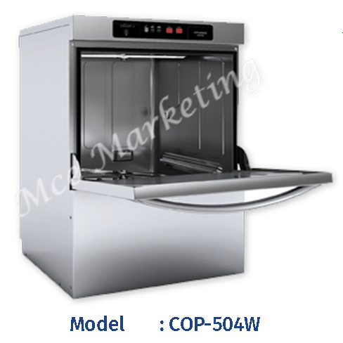 -Effi Rinse: Built-in water pressure pump and air brake system assuring a linear 180°F full rinsing cycle.