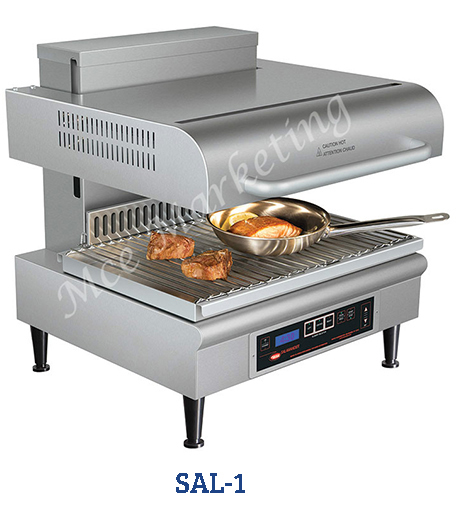 The Hatco Electric Salamander grill is specially designed for versatility in the kitchen with the capability to cook, grill, reheat and keep a variety of foods at their optimum serving temperatures. Three independently-controlled Instant-On quick-heating infrared ribbon elements provide the benefits of energy conservation and cost savings. The plate detection feature activates Instant-On heating elements when a food plate comes into contact with the plate detection bar, and automatically deactivates when the plate is removed. Features a touch control panel with a HOLD function that has eight programmable heat levels.