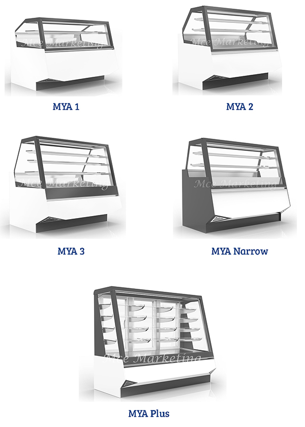 The Mya model includes 3 different families with different sizes ans depths but always canalizable: MYA, MYA PLUS and MYA NARROW. The series has 3 sizes for straight units and one 45° corner. All tanks are s/s coated and insulated with ecological polyurethane. MYA showcases are designed for excellent performances: the gelato units rely on a double air flow refrigeration that will assist any mountain style presentation also thanks to semi-hermetic compressors and extra quick reverse cycle defrosts; pastry units will give the possibility of selecting the number of refrigerated levels from 1 to 3, in order to meet the needs of the most demanding professionals.